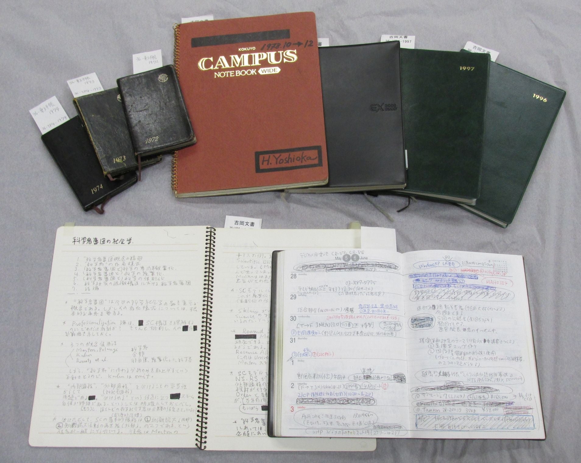 (写真①)吉岡氏の使用していた手帳類。研究・教育や、原子力政策への関与で多忙であったことがわかる。