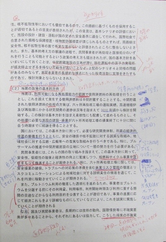 また、吉岡氏は日本のエネルギー政策、特に原子力政策に大きくかかわったため、原子力利用推進派と反対派双方の資料が数多く残されています。吉岡氏は安全性やコストの面から原子力利用に批判的であったため、吉岡氏の旧蔵資料、とりわけ政府の各種会議資料中に見られる批判的な書き込みは、今後の脱原発運動にとって示唆に富むものであると考えられます。一方、原発推進側にとっても、吉岡氏の批判を受け止め、これに応えることで、原発推進に説得力を持たせることができるため、学べることが多いと期待されます。