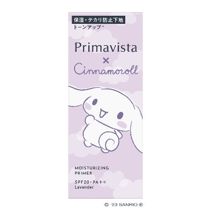プリマヴィスタ乾燥くずれ防止下地の限定デザインは、シナモロールのふんわり可愛らしい世界観の中で、元気いっぱいな印象のベージュ、洗練された印象のラベンダーのデザインをご用意しています。