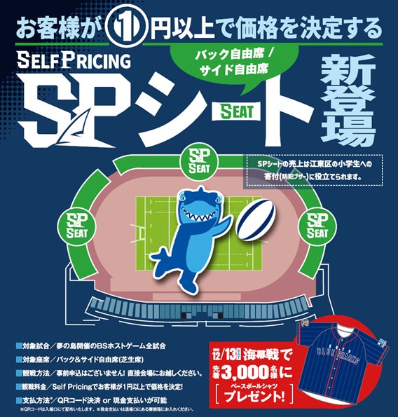 今シーズン、夢の島競技場開催のブルーシャークスホストゲーム全試合において、お客様自身で価格を決められるSP(Self Pricing)シートを導入いたします。
