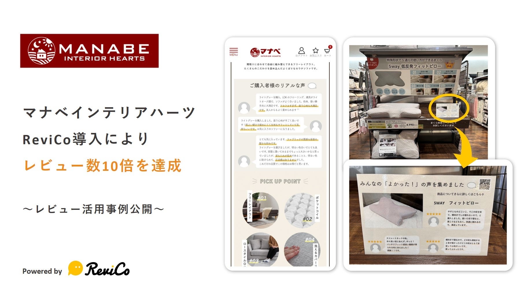 マナベインテリアハーツが「ReviCo」導入によりレビュー数10倍を達成、実店舗での接客やスタッフのモチベーションUP、商品ページ改善へ活用