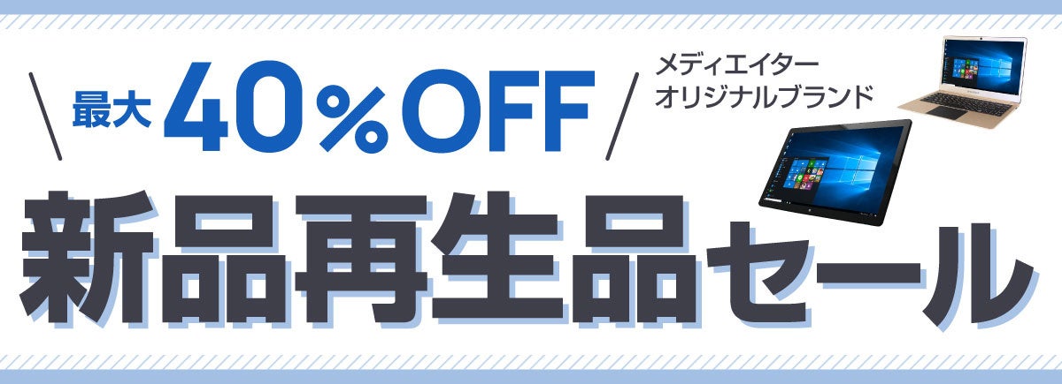 株式会社メディエイター(所在地:福岡県中央区)が運営する、中古パソコン販売を主力とするパソコン市場では、2023年2月25日(土)から2023年3月31日(金)まで、「2023年 決算セール」を開催中です。さらに3月3日(金)からはパソコン市場オリジナルパソコンの新品再生品セールが開始されました。