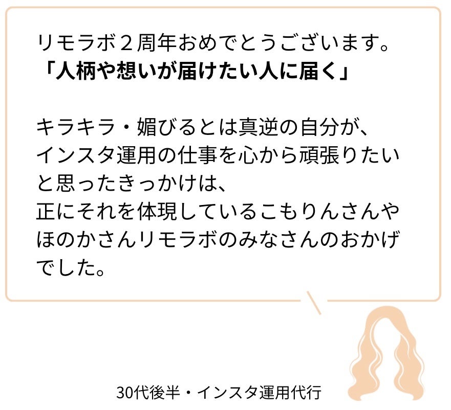 2周年を迎え、リモラボメンバーから多くのメッセージをいただいています。