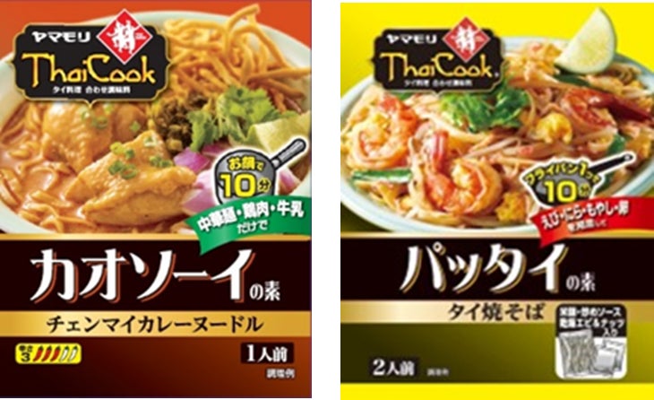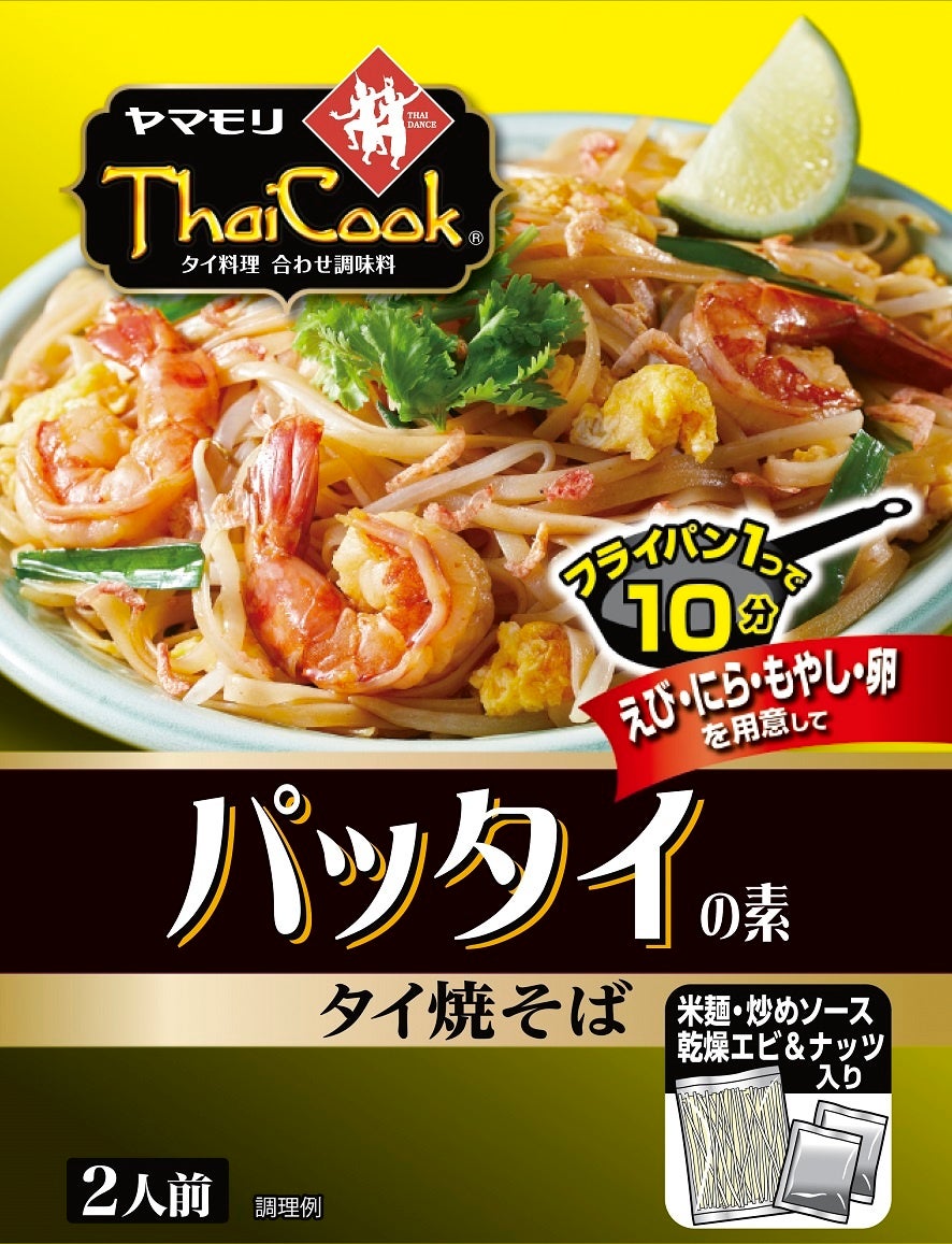 タイ中央部に起源を持つタイ風焼きそば。”タイを炒める(パット=炒める+タイ)”という名が示すように、代表的なタイの麺料理で誰からも愛されています。タマリンド(果実)がコクと酸味を与えた独特なソースが米麺に絡んだ味わいは、タイ料理好きでなくてもハマるおいしさです。干しエビやピーナツで食感を加え、ナンプラーやトウガラシ、ライムを絞って味変して楽しむのが現地流。ヤマモリの『パッタイの素』は、ご家庭で再現するのが困難なタマリンド配合の炒めソースに米麺、乾燥具材(ピーナッツ・乾燥海老)入りで、お好みの具材で10分のワンパン調理、でも本格的な味わいを再現しています。