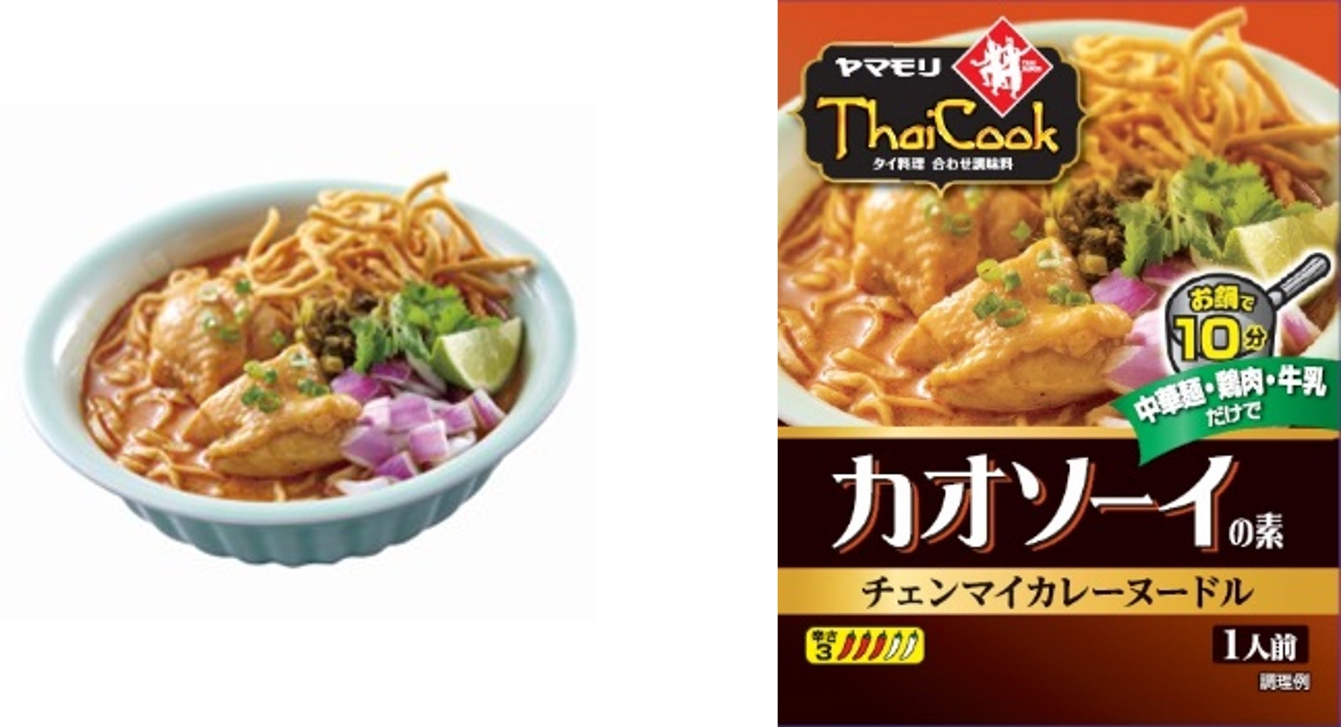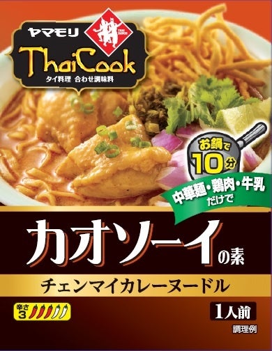 古都・チェンマイを擁するタイ北部の名物カレーヌードル。こってりしたココナッツミルクにカレーペーストと様々なスパイスが溶け込んだ優しくクリーミー、かつ複雑な味わいです。現地では揚げた麺と赤小玉ねぎ、パッカドーンと呼ばれる高菜に似たお漬物を添えてライムを絞っていただきます。オンライントラベルガイドのTasteatlas(https://www.tasteatlas.com/)でもBest soupとして選出されたり、おいしいお店の特集が組まれるなど、世界中で人気を集めています。 ヤマモリの『カオソーイの素』はご自宅に揃いにくいココナッツミルクを使わず、牛乳で出来るように配合を工夫しました。ご家庭では再現できない味わいでおすすめの一品です。