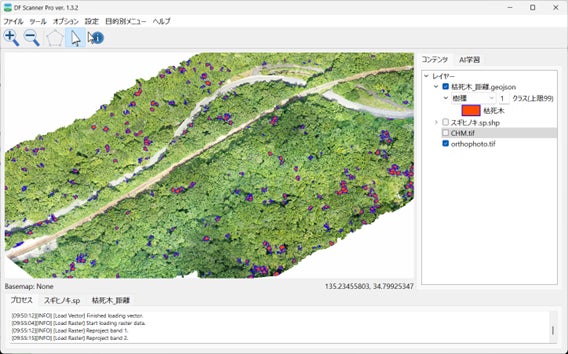 *2 「スギヒノキ分類」機能を使用。本機能はソフトウェアに組み込まれた学習モデルを使用し、スギ・ヒノキ・その他樹種・ 枯死木の4分類を自動検出する。