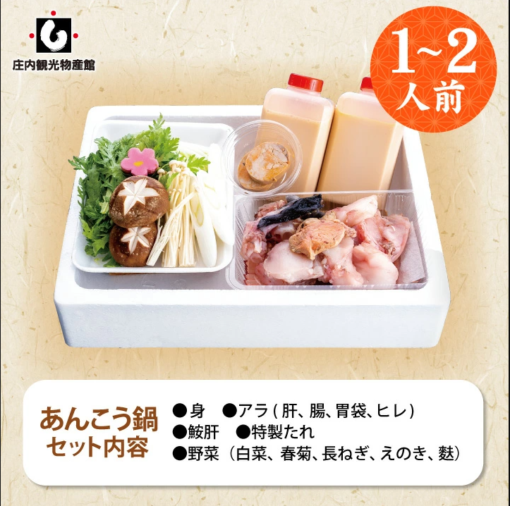 庄内観光物産館スタッフが、あんこう料理の本場である茨城県に訪れ、現地の味と技術を学んだ上で独自に開発したオリジナルの特性タレで作る「あんこう鍋」をお楽しみください!
