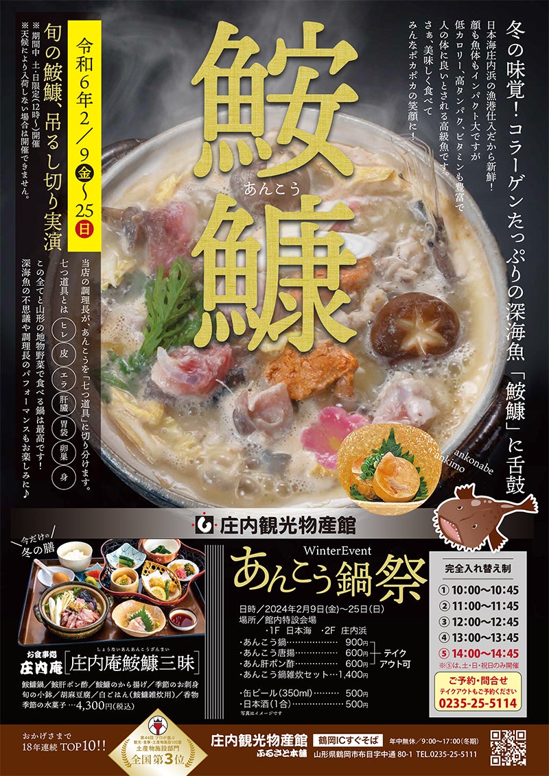 [山形県鶴岡市]庄内冬の新グルメ!日本海あんこうを堪能できる「あんこう鍋祭」が今年も開催!(庄内観光物産館 2月9日[金]~2月25日[日])