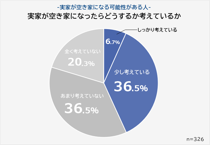 実家が空き家になったらどうするかを「しっかり考えている」と回答したのはわずか7.2%。「少し考えている」と合わせても、4割に満たない結果となりました。