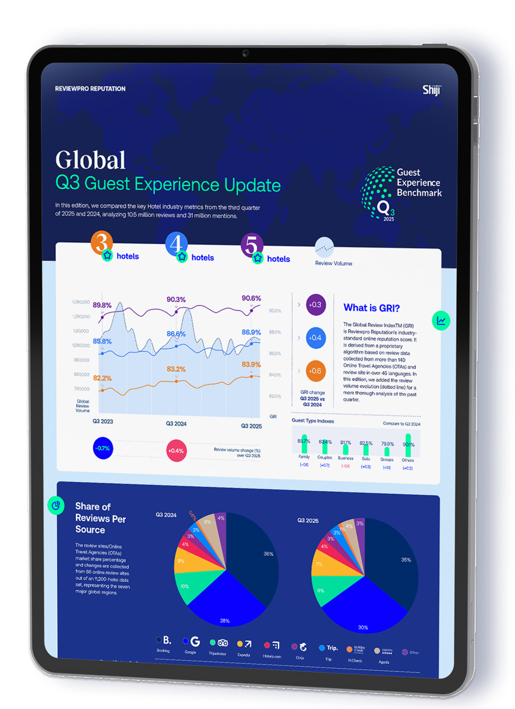世界80以上のレビューサイト、45言語のレビューを横断的に分析し、独自の指標GRI™や競合指標スコアCQI™を用いて、単なる「クチコミ管理」にとどまらない戦略的レピュテーション管理を実現します。その他、AI返信や自動タスク機能など、レピュテーション管理に必要な機能を包括的にご提供します。