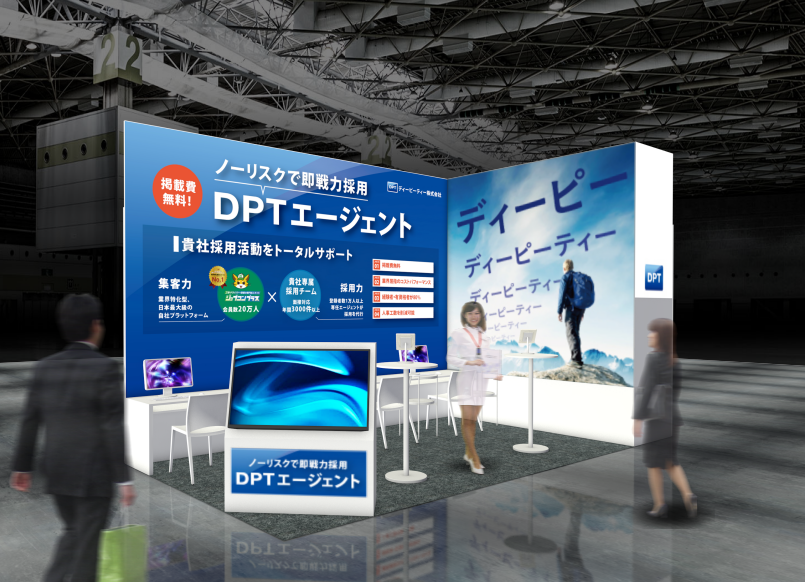 当社ブースでは、新サービスの「DPTエージェント」をご紹介いたします。人材採用のプロが採用課題のお悩みにベストなご提案をさせていただきます。どうぞお気軽にお立ち寄りください。