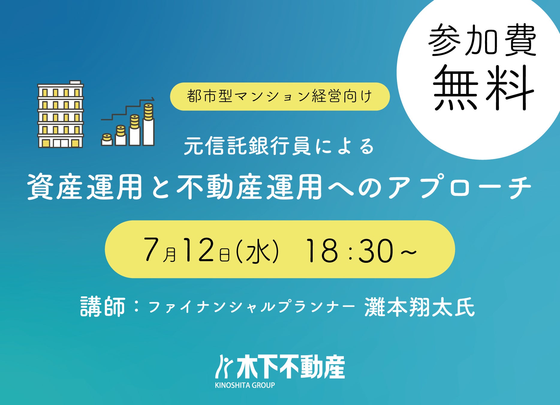 7/12(水) 18:30~ FPによる無料セミナー開催!#大人の学び #お金 #投資「元信託銀行員による資産運用と不動産運用へのアプローチ」