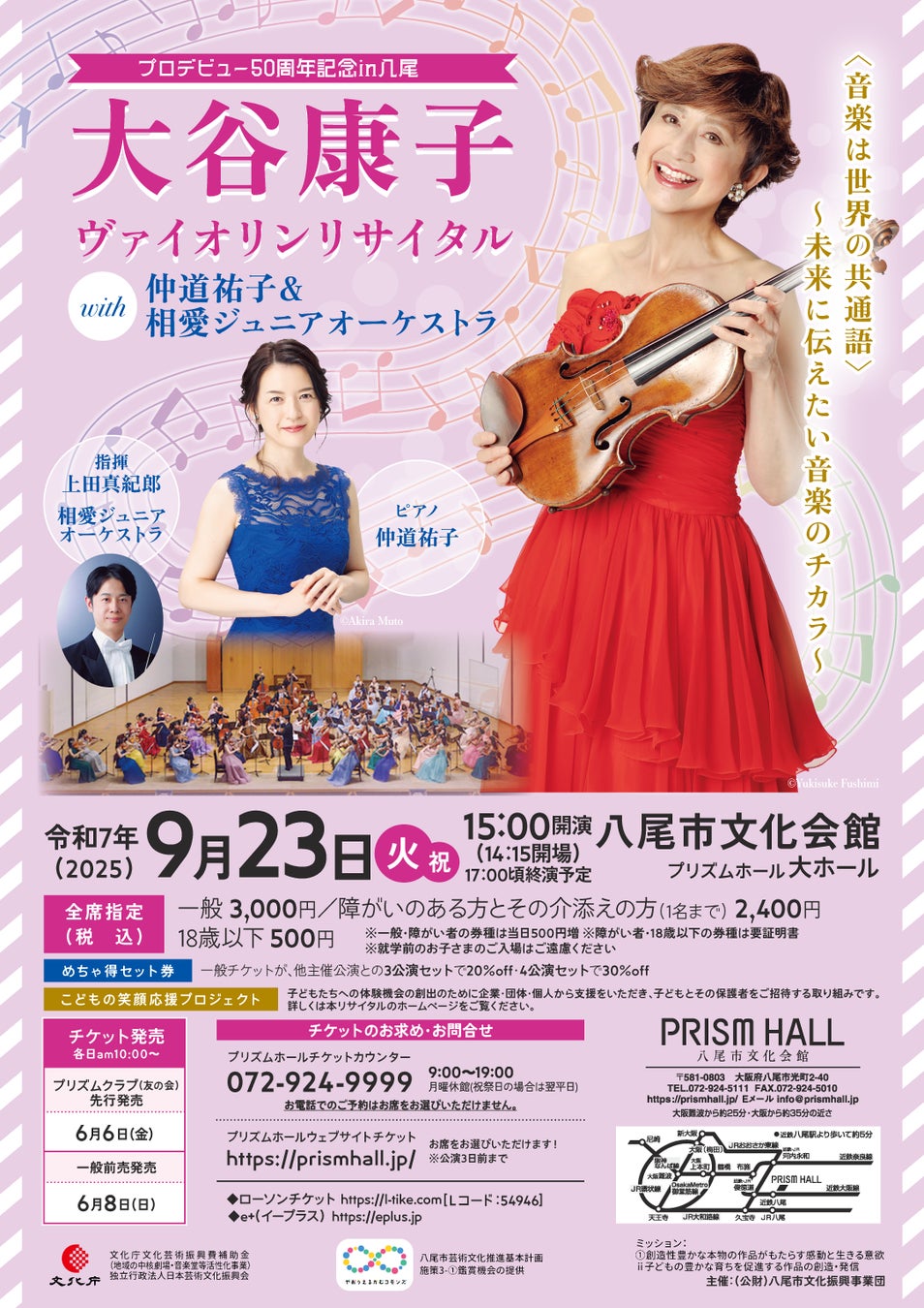 大谷康子ヴァイオリンリサイタル with仲道祐子&相愛ジュニアオーケストラ(八尾市文化会館(大阪府))