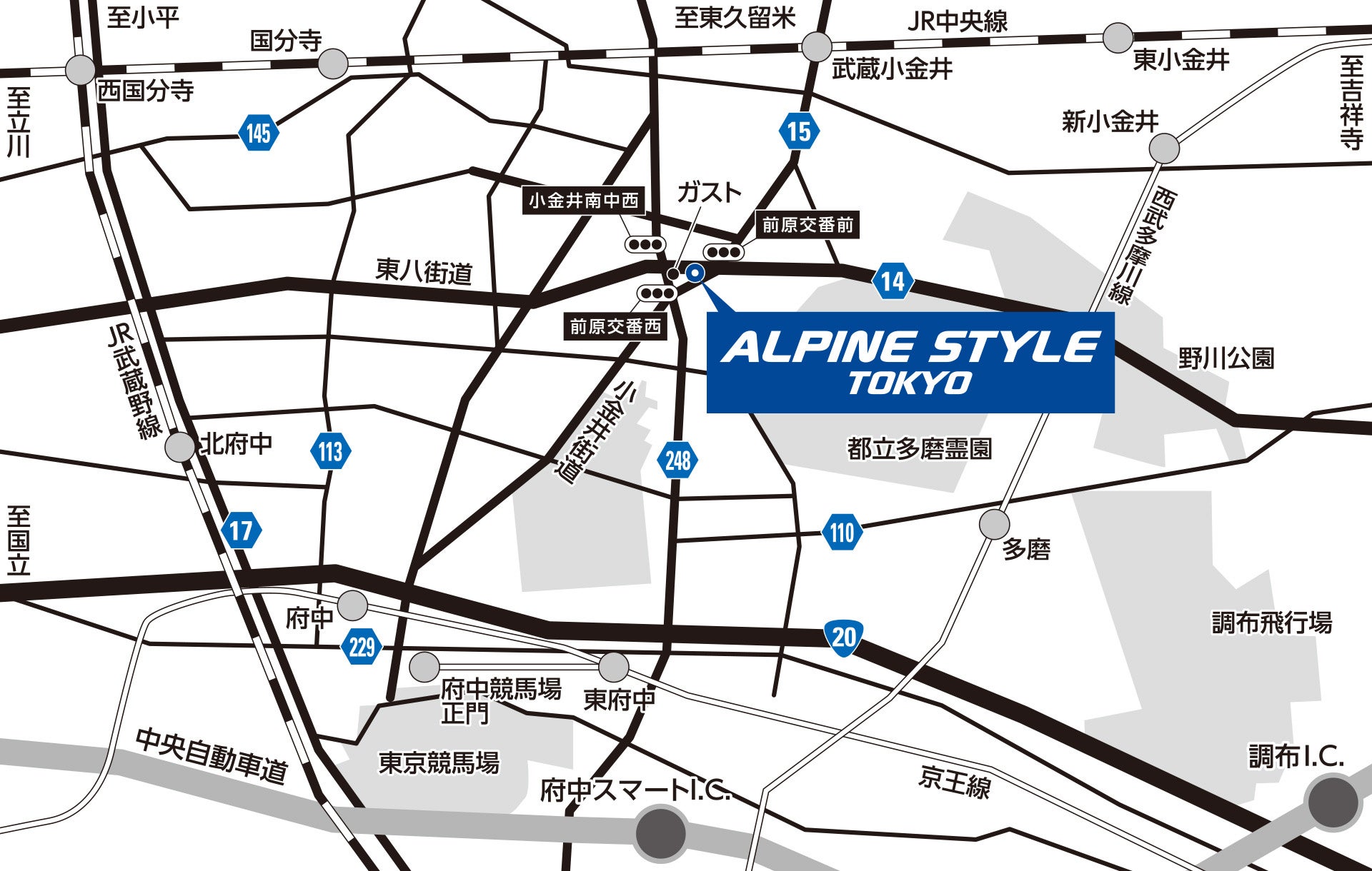 これまで東京都にお住まいの多くのお客様のご対応を「ALPINE STYLE横浜246」(東京都町田市)と「ALPINE STYLE埼玉R4」(埼玉県越谷市)にて行って参りましたが、お客様のより近くで、アルパインスタイルらしい上質なサービスを提供すべく、また潜在的なお客様がいらっしゃる東京都の商圏をカバーすべく、それぞれの店舗の中間地点となる立地に「ALPINE STYLE東京」としてオープン致します。