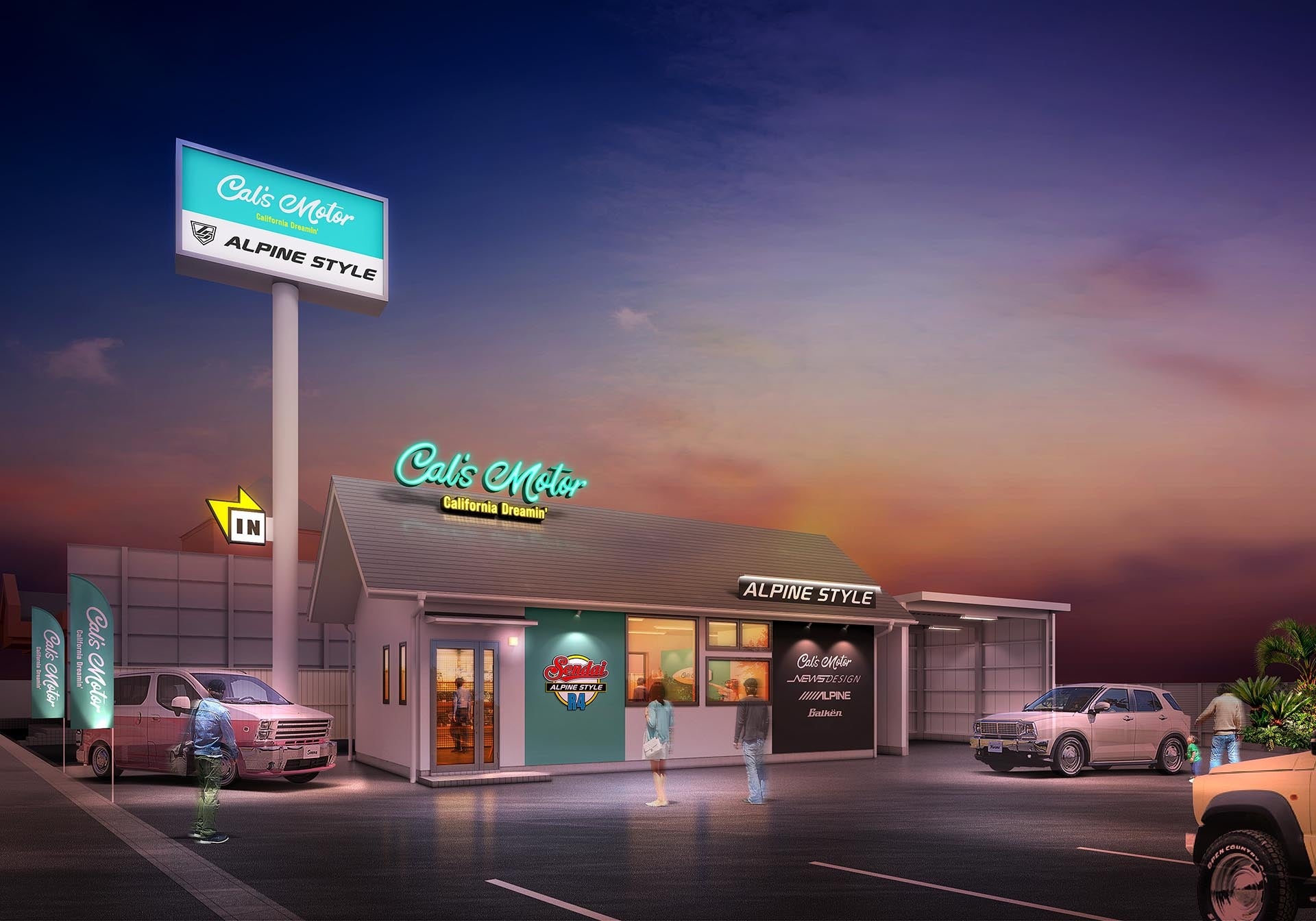 また、既報になっていますが、続く9店舗目となる「ALPINE STYLE千葉R16」(千葉県八千代市)を5月30日(金)にオープンすることをお知らせします。さらに、宮城県仙台市に「ALPINE STYLE仙台R4」を2025年初夏、そして中国エリア初の店舗となる広島県への出店決定したことをお知らせします。ALPINE製品の販売取り付けはもとより、Cal’s Motor車両や各種用品を取りそろえ、ALPINE STYLEサービス提供を拡大して参ります。