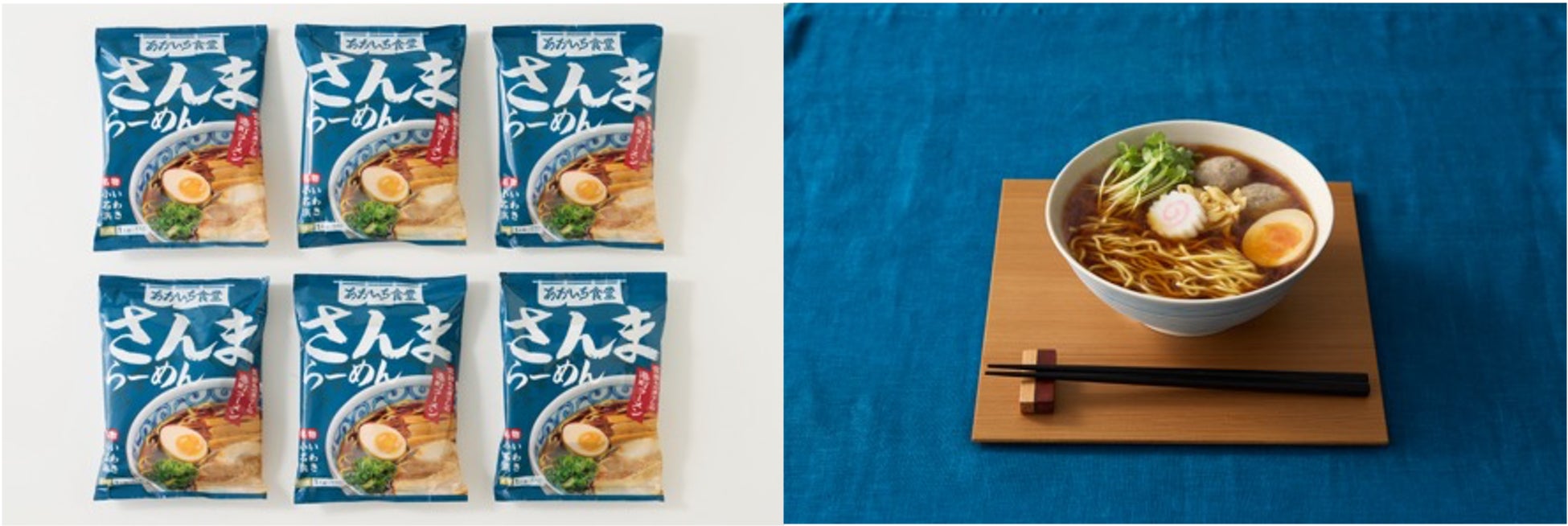 福島県の太平洋沿岸は、親潮と黒潮が交わる地点に位置し、多種多様な海洋生物が集まる豊かな漁場です。常磐沖で水揚げされる魚介類は「常磐もの」と親しまれ、鮮度と品質に優れた高い評価を受けています。今回福島県では、地元・常磐ものの未利用魚などで出汁を取った『小名浜あおいち食堂 さんまラーメン』など2商品を発売開始。
