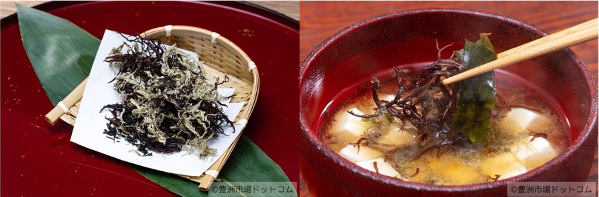 十三浜わかめに、とろろ昆布・ふのりを合わせました。そのまま味噌汁に入れてお使いください。わかめのシャキシャキした歯ごたえ、とろろ昆布のねっとりとした食感と芳醇な香り、味噌とふのりの旨味が絡み、食感だけでなく香りや味わいも高めてくれます。
