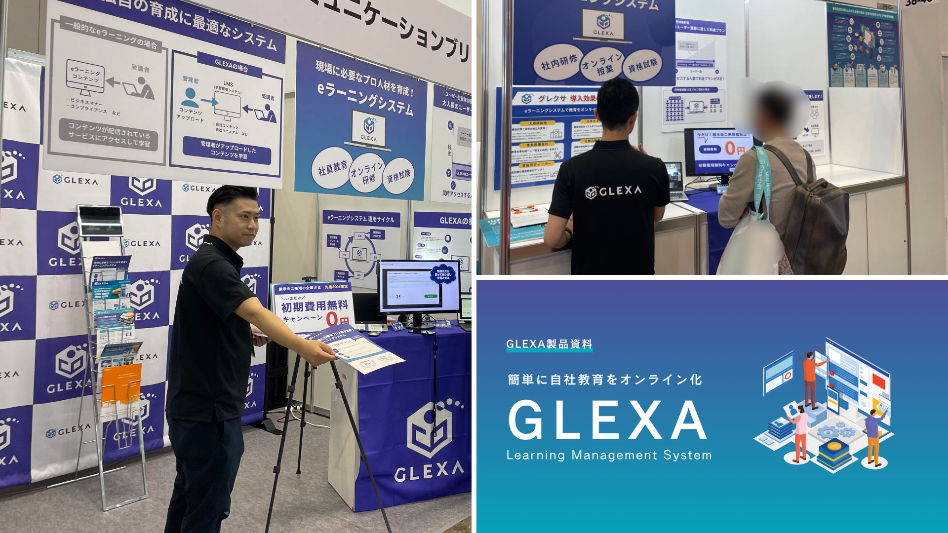 弊社ブースではeラーニングシステム「GLEXA(グレクサ)for エンタープライズ / https://glexa.jp/」の機能や現場での活用方法などを担当者が実演デモを交えて詳しくご紹介させていただきました。