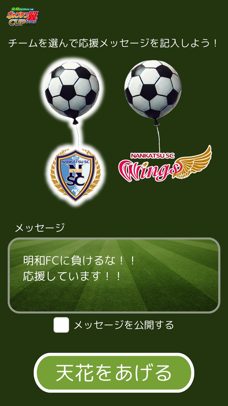 南葛SCや南葛SC WINGSへの熱い応援メッセージを入力。