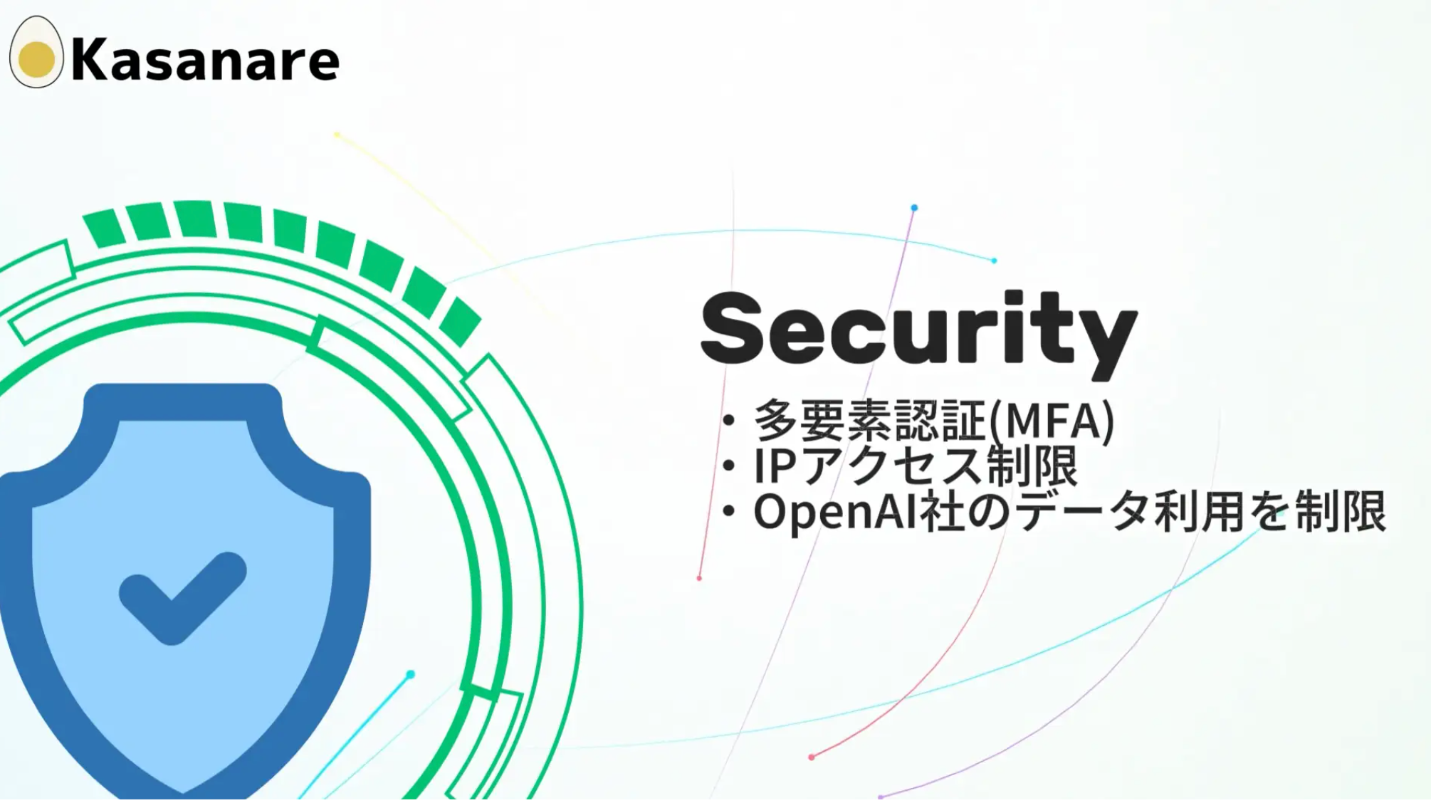 IPアクセス制限やMFA(多要素認証)などのハード面に加え、検索ワードの最適化やハルシネーション(AIが嘘をつくような現象)対策などソフト面の対策を両軸で備えることで、実際の運用を見据えたセキュリティレベルを担保しています。