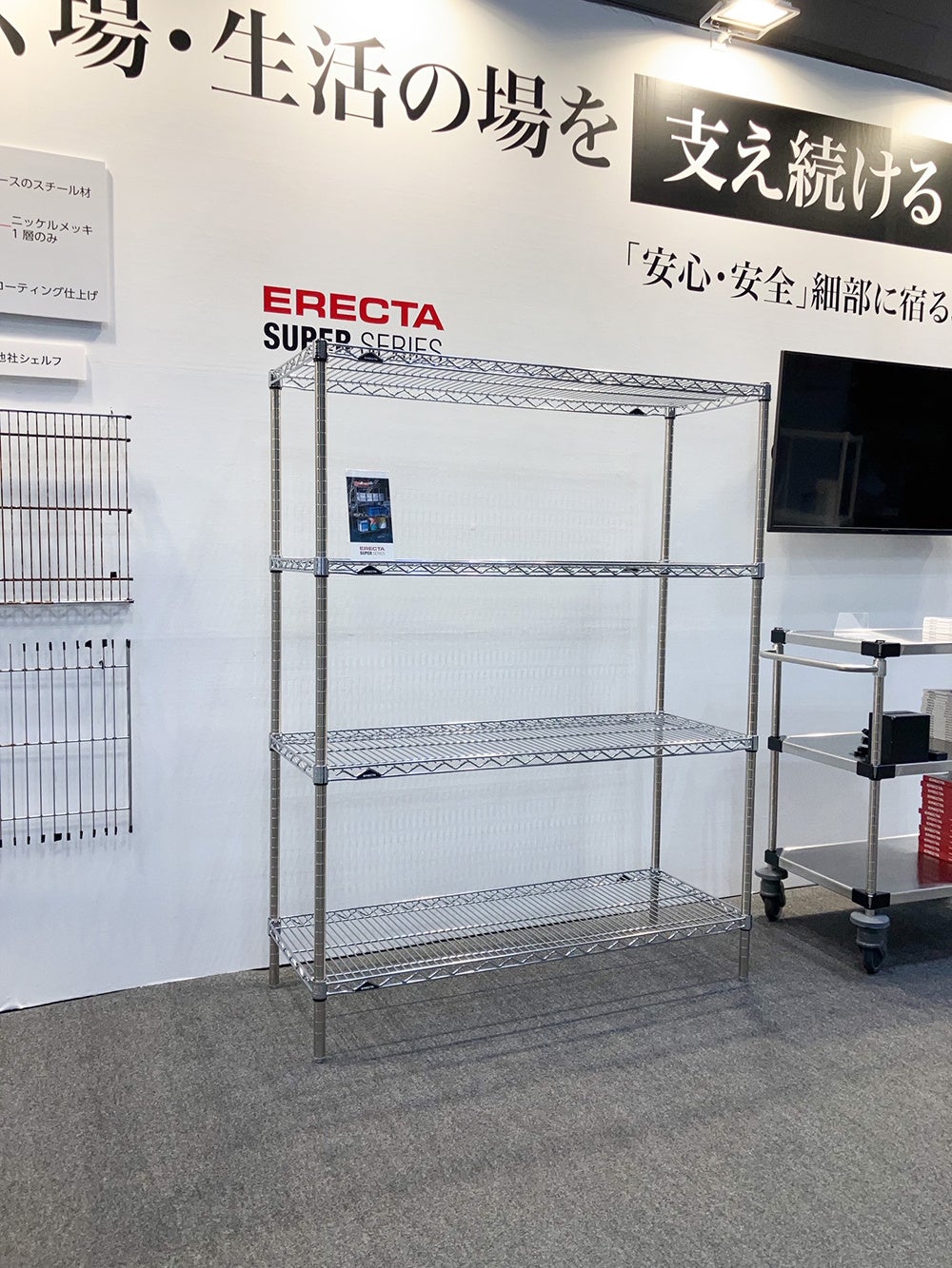 エレクターは独創的でワンアンドオンリーな存在として、ワイヤーシェルフをはじめとした多数の商品により、各業界のプロフェッショナルを支え続けています。