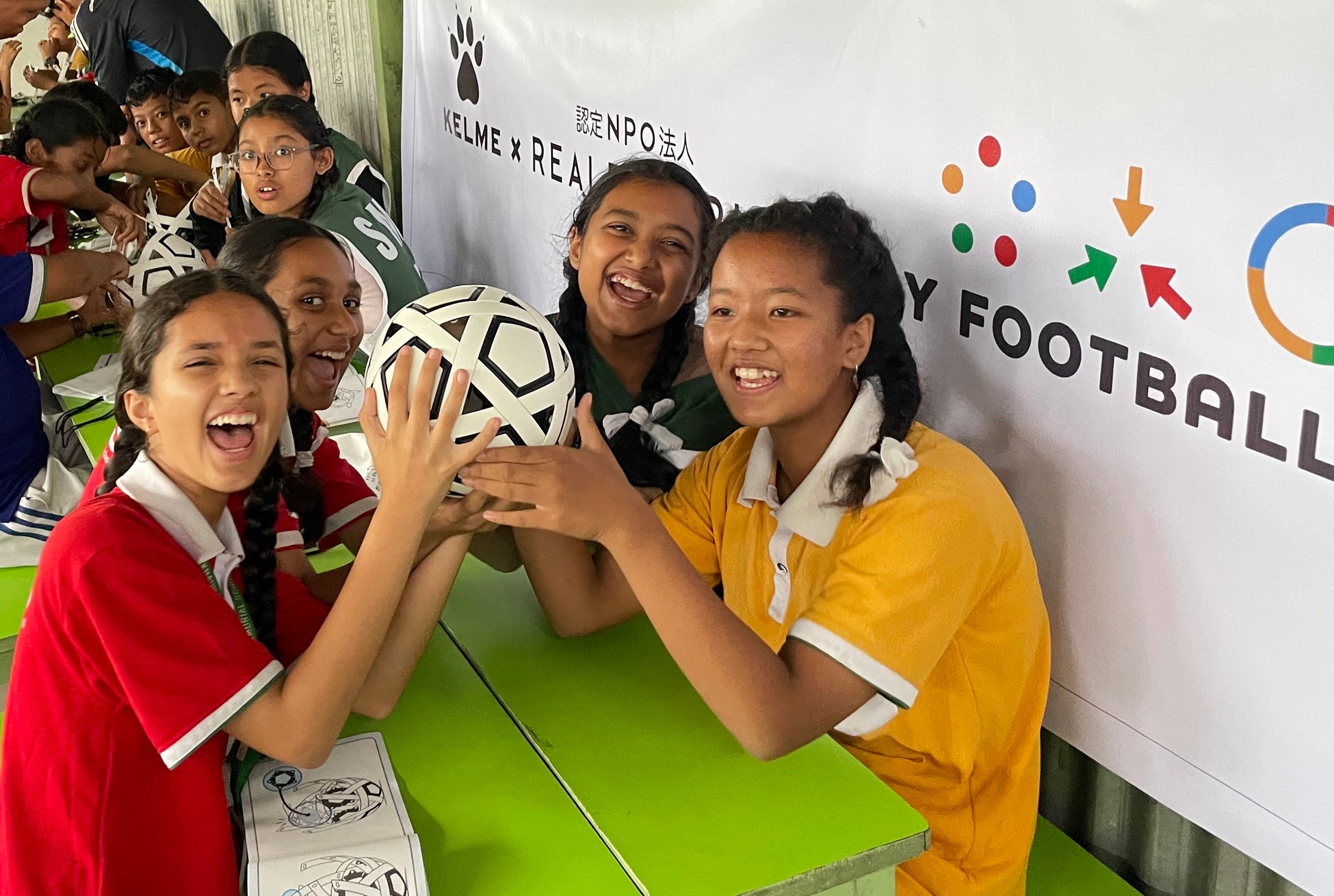 認定NPO法人REALE WORLD が、トータス株式会社(KELME JAPAN)のサポートにより、ネパールで「MY FOOTBALL KIT」を使ったイベント開催