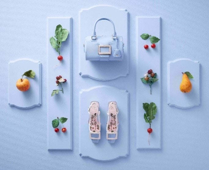 春夏コレクションの新作である「ボーリングバッグ」は、伊勢丹先行発売のブルーをはじめ、全5色が揃います。1960年代のアーカイブのU字型ヒールとトーンオントーンのバックルが特徴の「ユールック」パンプスは、ブルーに加えてグリーンでも登場します。メゾンの最新スニーカーである「ヴィヴ オン ザ ラン」も、日本限定のカーキとゴールドのユニークなバリエーションで登場。これらのスニーカーは、繊細なフルーツを表現した取り外し可能なチャームで、遊び心とカスタマイズ、両方のタッチを加えることができます。この限定スニーカーにあわせた、カーキの キャンバスシリーズは、メゾンで人気のコレクションから派生した、これまでにないカジュアルな雰囲気で、新しい季節にもふさわしいラインとなっています。日本限定のバッグ、シューズには、植物や果物を繊細に手書きプリントした特別な内ポケット、およびインソールが施されています。