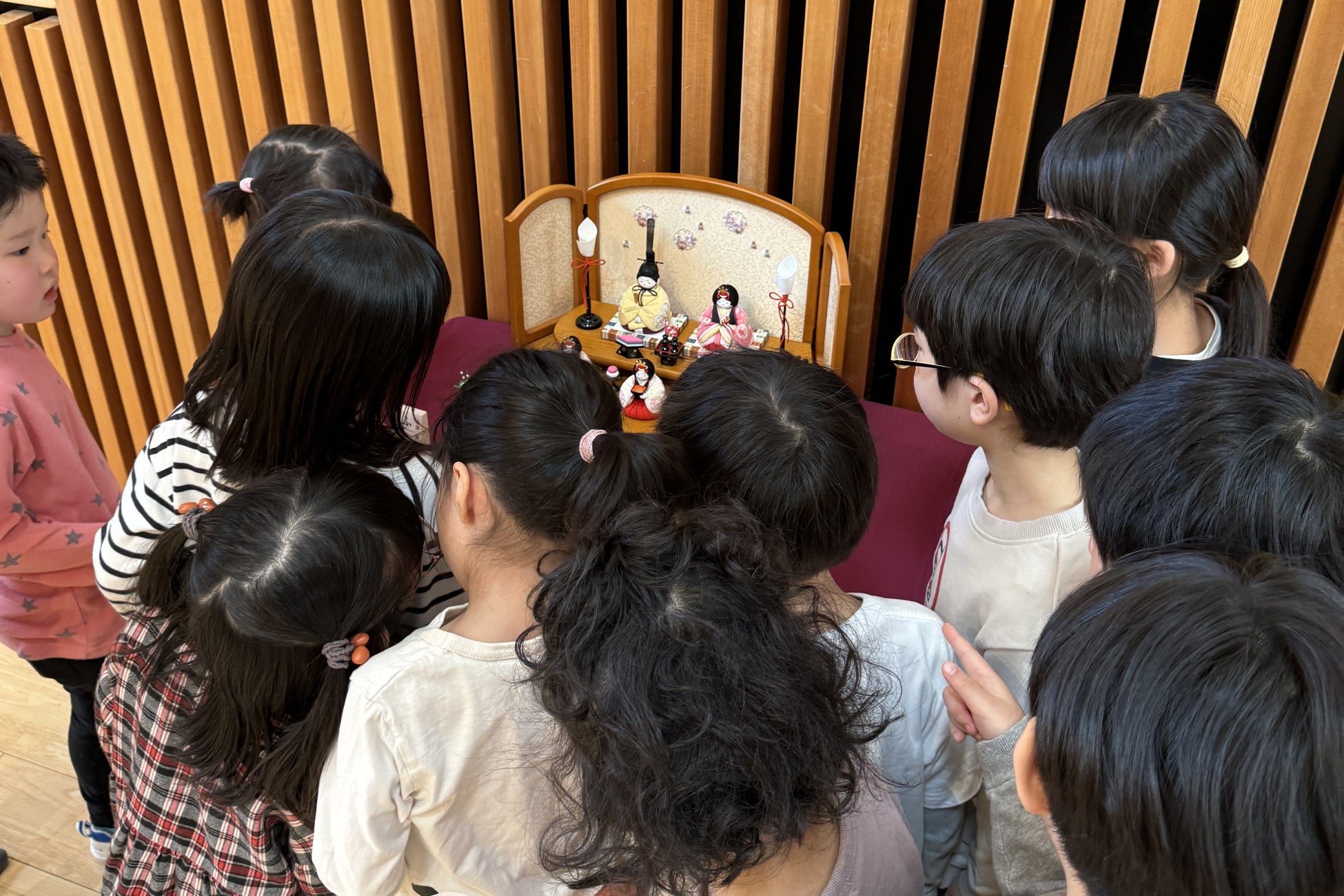 0歳児や1歳児の小さなお子様も、大切なお人形であるとわかるようで、触れずに近くから“じーっ”と見つめては楽しんでいる姿が見られました。(楽しみすぎて、お迎えに来ていただいても“もう一回みるー!”と保護者の方の手を引いてホールに戻る姿も・・・!?)