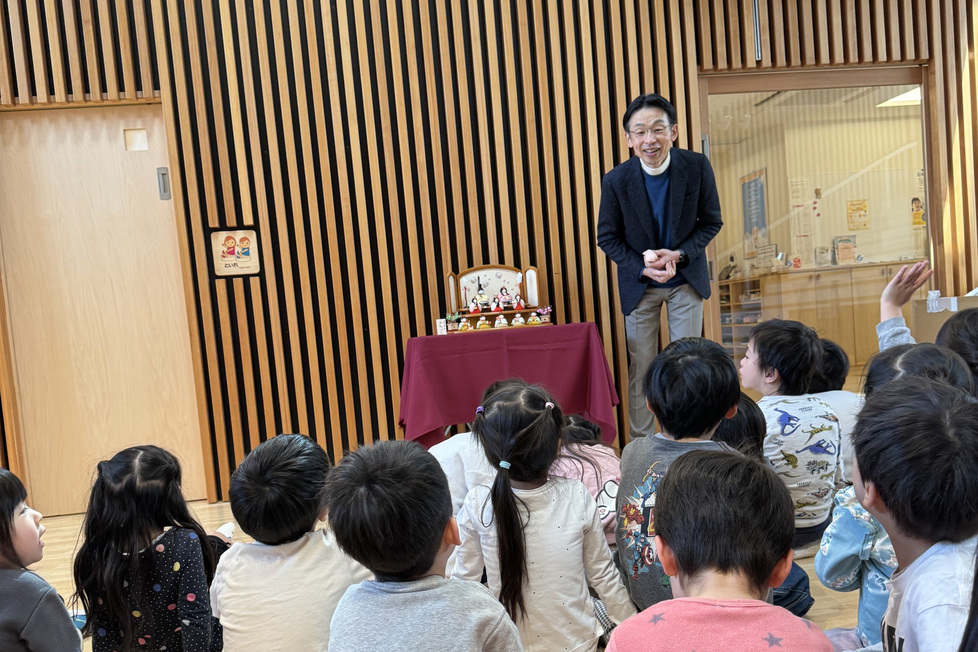 そして、2月29日(木)には、寄贈先の一つである「みらいく中村橋園」保育園に、ふらここの代表取締役・原 英洋が訪問して雛人形の飾り付けを行いました。