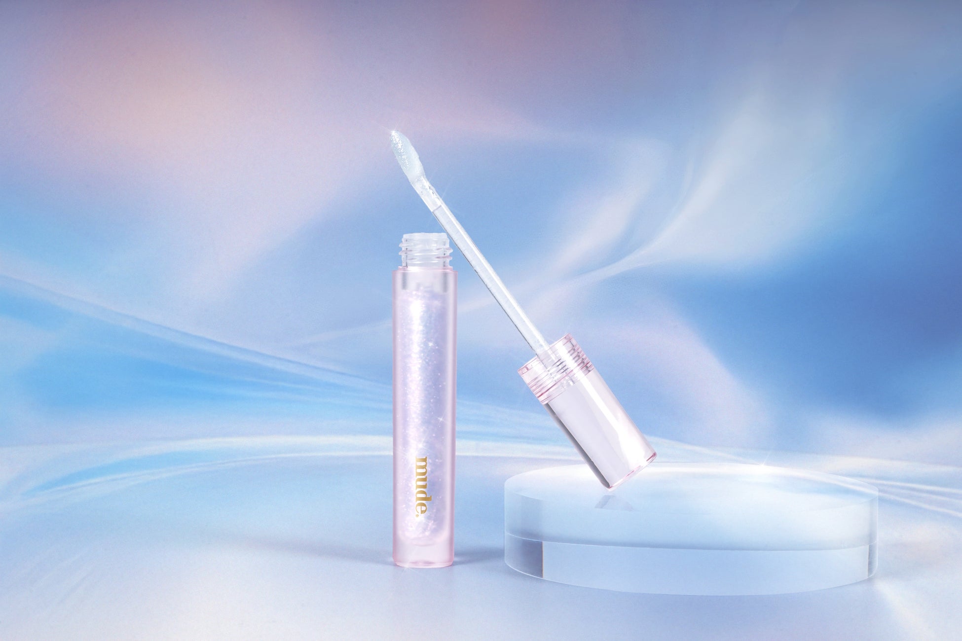 ほんのりブルーがかったグロスと微細ラメが唇に透明感と光沢を与えてくれます。