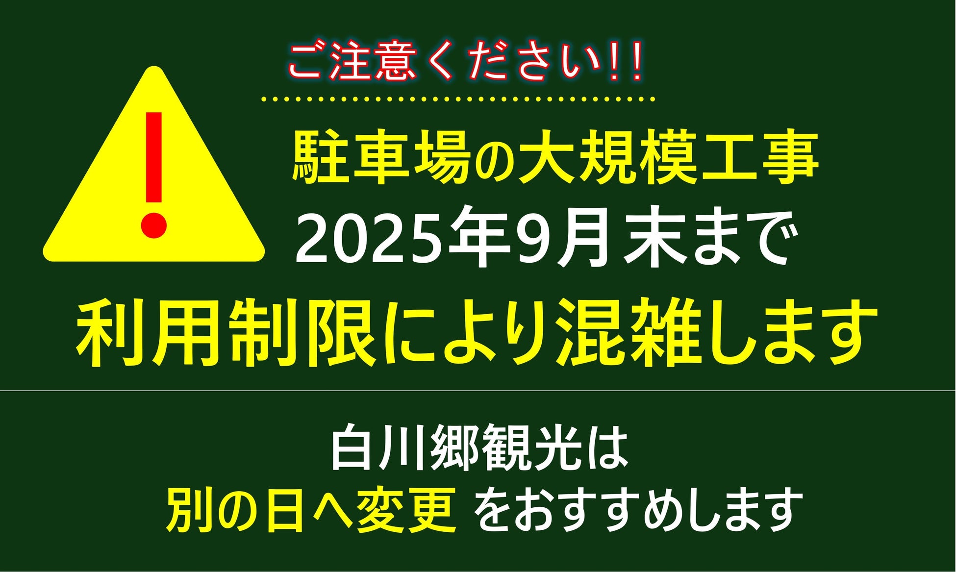これに伴い、工事期間中は駐車可能台数の大幅な減少及び工事車両の往来等により、渋滞しやすい状況が予想されます。世界遺産白川郷の公営駐車場の混雑状況や周辺の交通渋滞に関する最新情報は、オーバーツーリズム対策総合サイト「シラカワ・ゴーイング」で発信しております。ご活用ください。