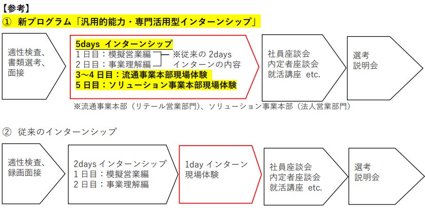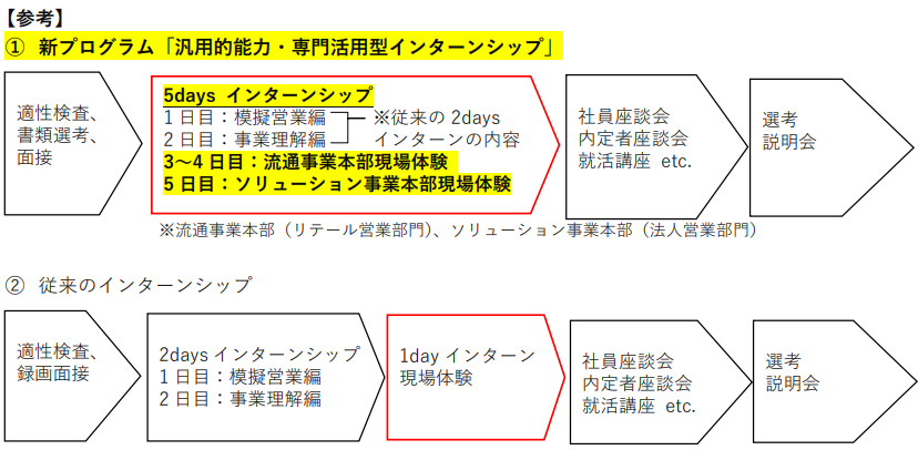 2023年8月からは、2025度新卒学生向けに従来のプログラムに加えて、適性検査・書類審査に合格した学生だけが参加できる新プログラム『汎用的能力・専門活用型インターンシップ※(5daysインターンシップ/うち3日間は現場体験実習)』を開催していますので、お知らせいたします。