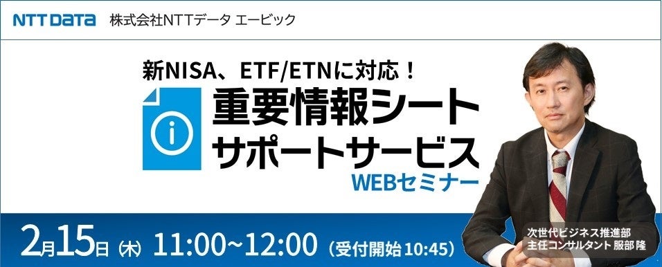 新NISA、ETF/ETNにも対応した「重要情報シートサポートサービス」をご案内する、金融機関向けWEBセミナーを開催します。