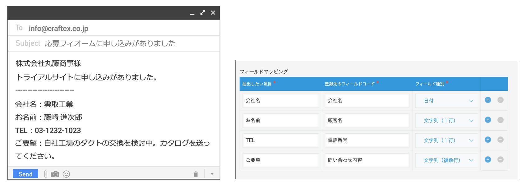 柔軟なデータマッピング:メール本文からkintoneフィールドへ自動抽出