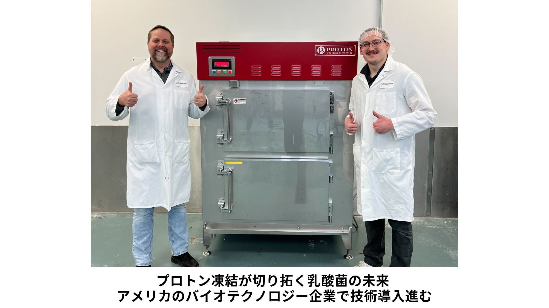 乳酸菌を中心としたプロバイオティクス製品の研究・製造を行う同社において、乳酸菌の歩留まりや品質保持力を高めるための技術として、プロトン凍結技術が評価されました。プロトン凍結機の導入により、同社の製造工程の最適化にもつながり、事業成長につながることが期待されています。また、日本の技術がアメリカのバイオ業界に大きな変革をもたらす可能性のあるプロジェクトになりました。
