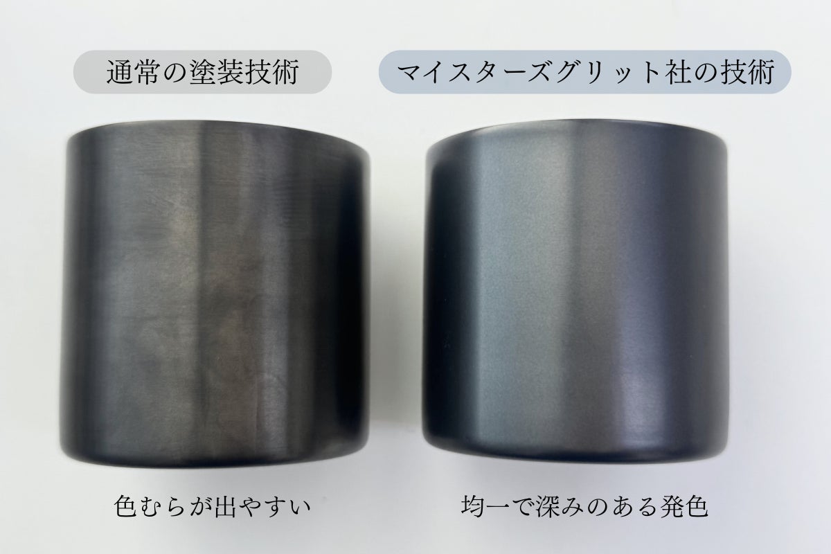 また、マイスターズグリット社からの提案により、タンブラーの側面を鏡面磨きにしてから塗装する工程を導入。