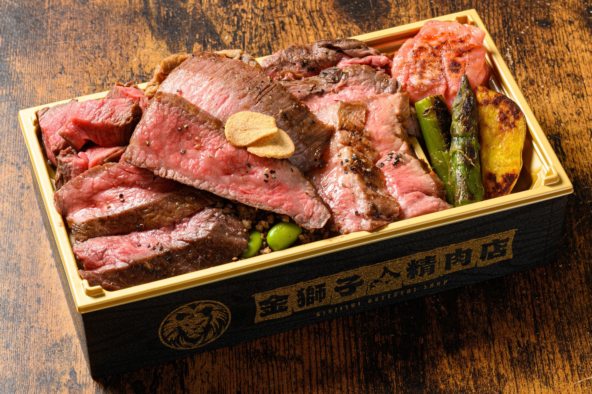 〈金獅子精肉店〉北海道和牛3種入り 10種盛り1頭食いステーキ弁当(1折)★各日50折限り 2,970円 【1週目のみ】