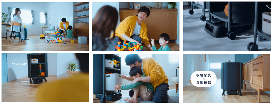 11月1日(水)~11月26日(木)まで福岡県限定で放映する新CMは、カチャカが変える「いつもの暮らし」をテーマに、“自分で動く収納家具”であるカチャカが生活にやってくることによって、「モノの移動」や「片付け」の概念、家族とのコミュニケーションも変化する様子を表現しています。