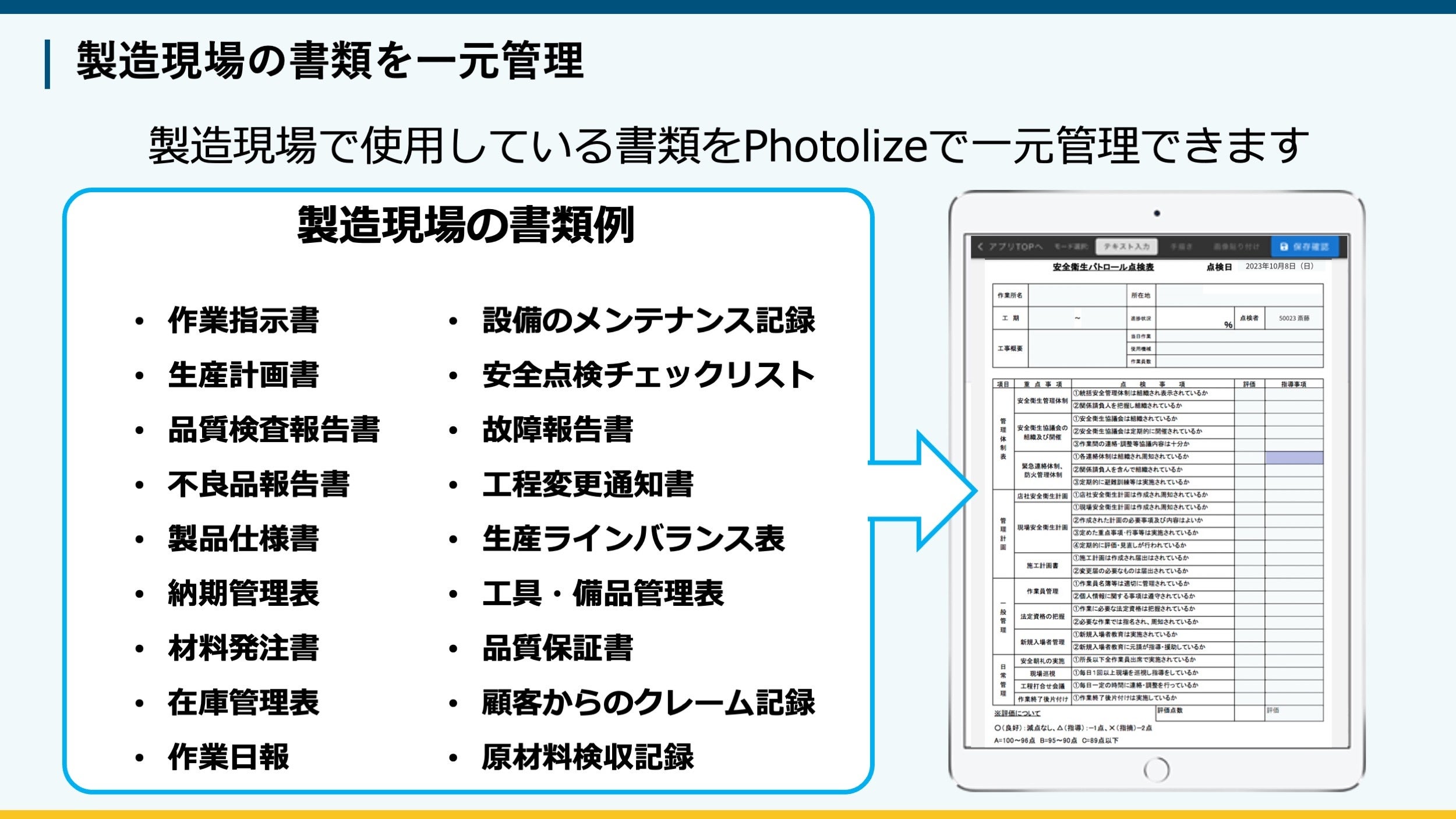 Photolizeを製造現場で利用したことによって下記の導入効果を上げられるよう、機能追加や製造業の課題に対する解像度を高めていきます。