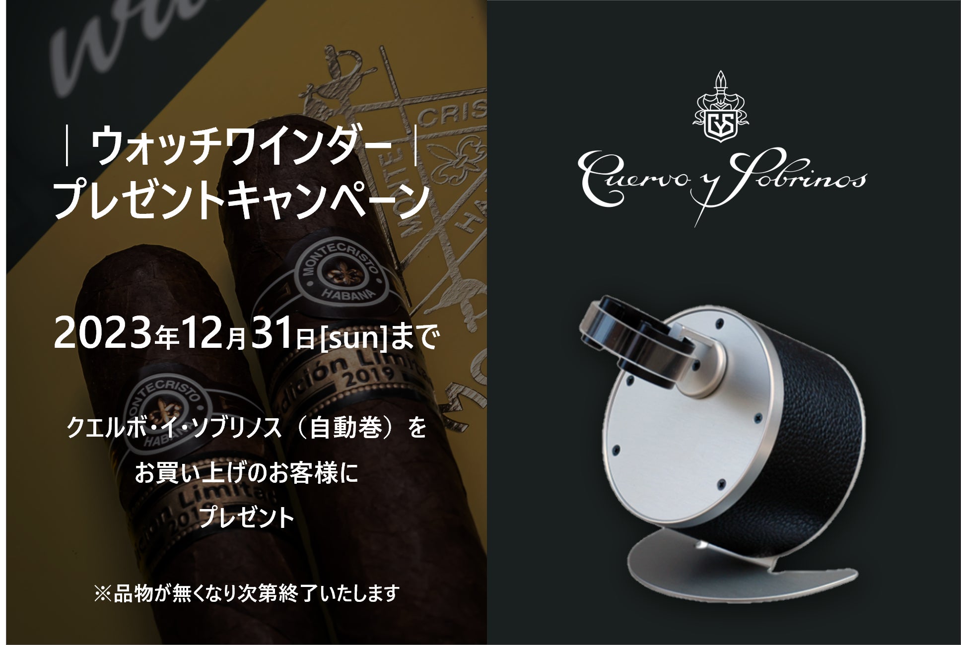 キャンペーン期間中、自動巻クエルボ・イ・ソブリノスをお買い上げのお客様にウォッチワインダー(1個巻)をプレゼント。(クォーツ時計は除外となります。)