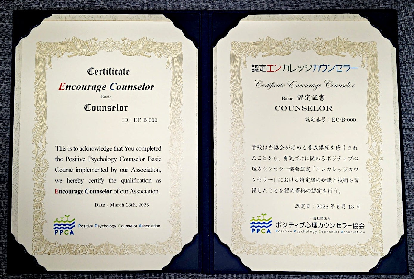 ■※2日間修了されると,認定「エンカレッジカウンセラー(勇気づけカウンセラー)」として認定を受けることもできます。