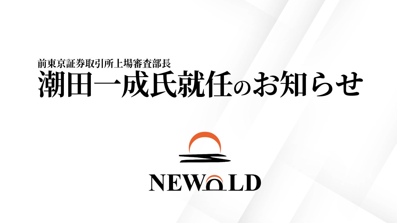 株式会社NEWOLD CAPITAL(本社:東京都渋谷区、代表取締役CEO:栗原 弘行、以下「NEWOLD」および「当社」)は、さらなる経営体制の強化と事業成長を目指し、この度、前東京証券取引所上場審査部長の潮田一成氏を顧問として迎えましたことをお知らせいたします。