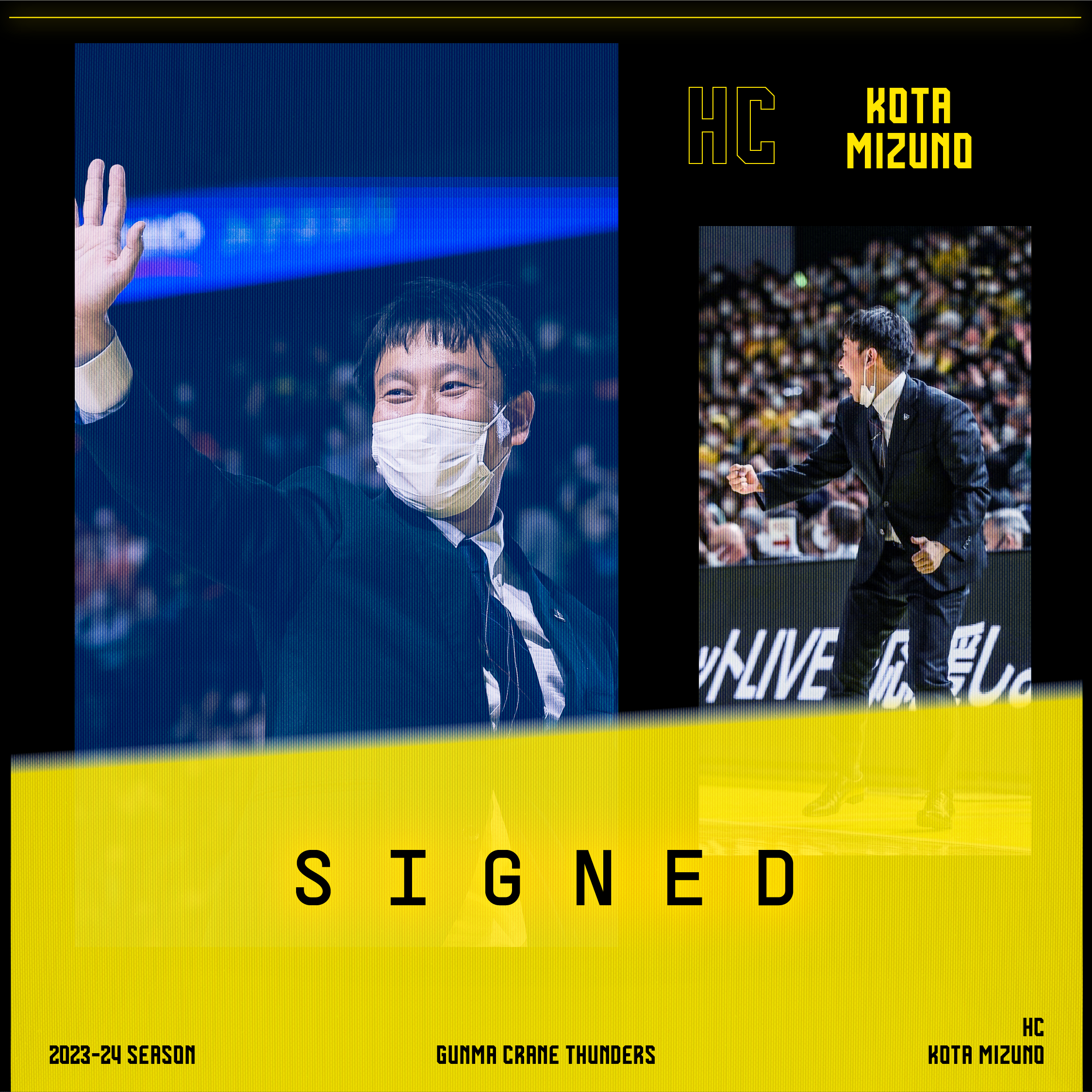 この度、群馬クレインサンダーズでは、水野宏太氏とのBリーグ2023-24シーズンのヘッドコーチ契約が基本合意(継続)に達しましたのでお知らせいたします。