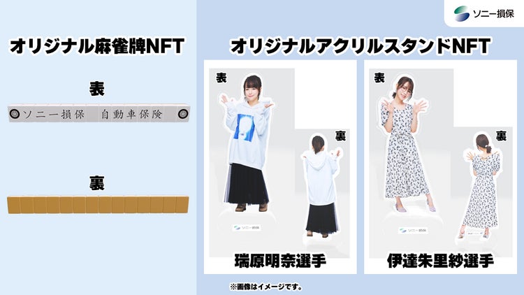 ※オリジナルアクリルスタンドNFTは、2025年5月30日(金)16:00以降順次、アクリルスタンドからソニー損保のロゴが描かれたオリジナル麻雀牌NFTに変化しますので、ご了承ください。なお、ご利用されている端末にキャッシュが残っている場合等、端末側の問題で即時に切替わらないケースがあります。
