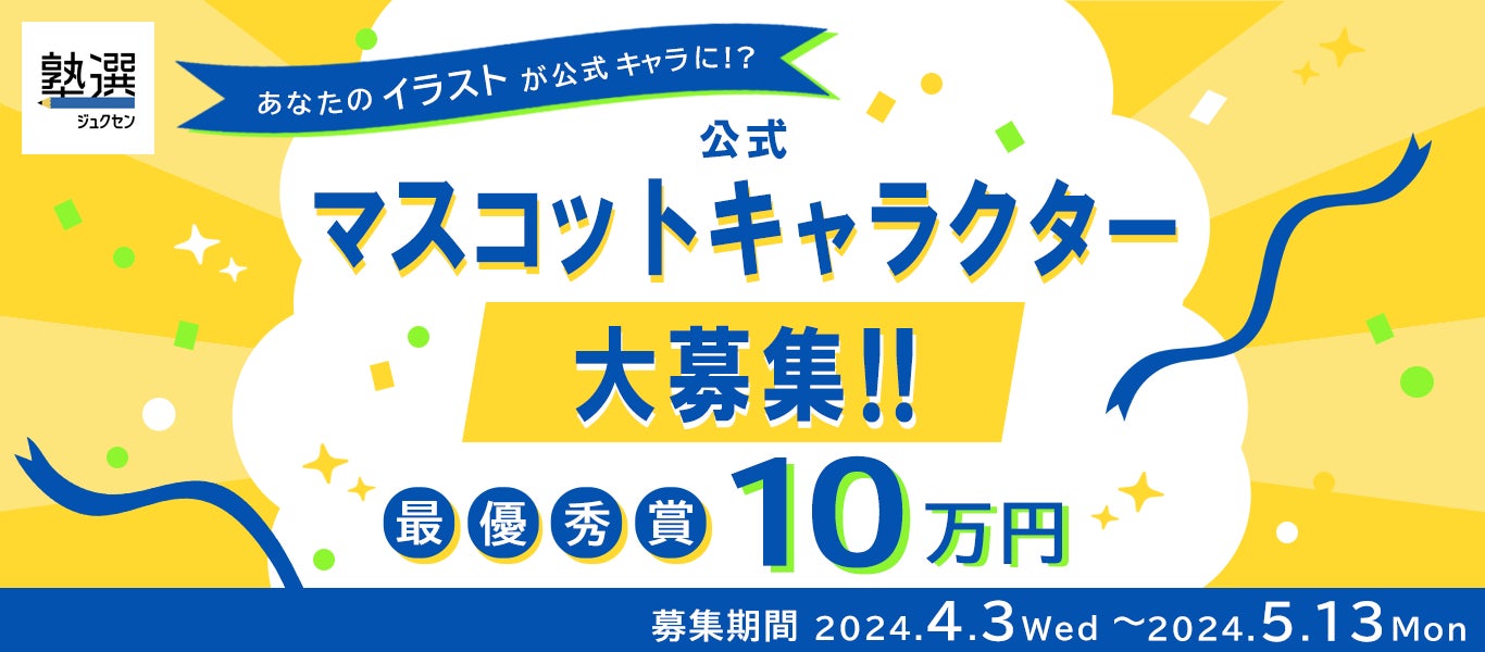 今回はそんな『塾選』の魅力を世の中に伝える手助けをしてくれる、公式マスコットキャラクターの募集を行います。応募期間は2024年4月3日(水)から、2024年5月13日(月)まで。