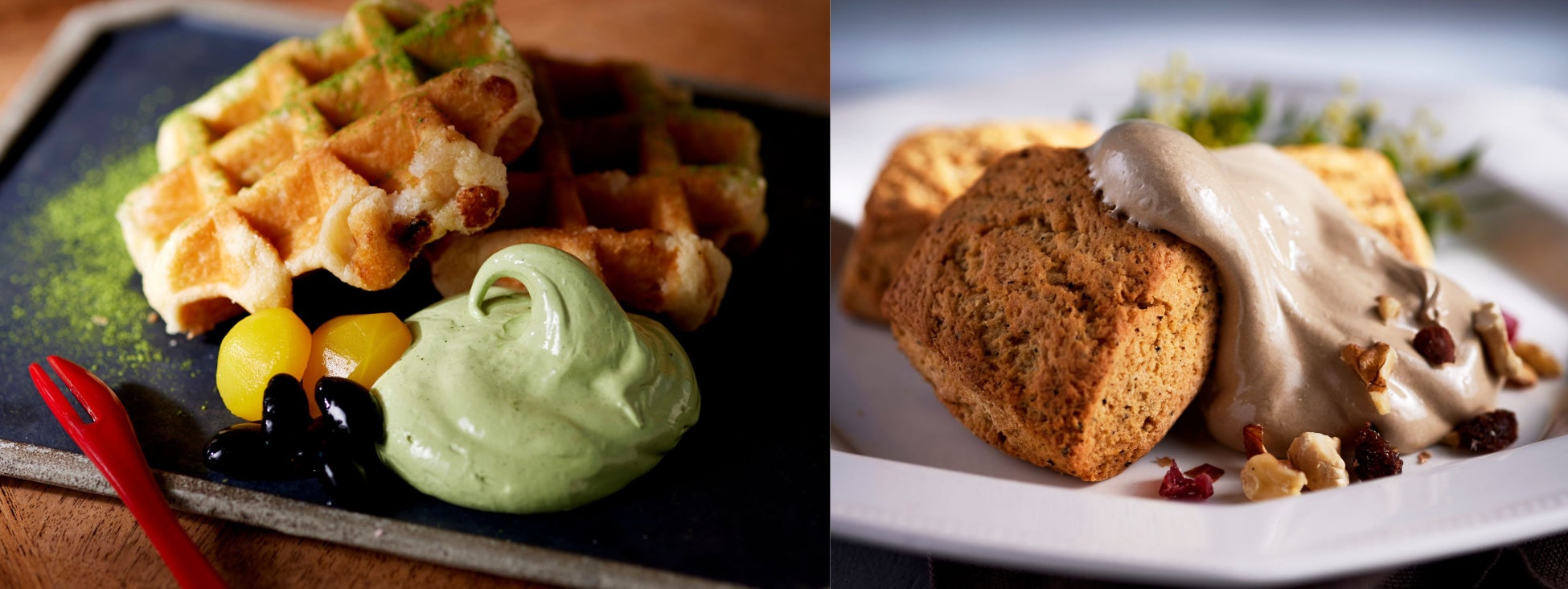 さっくりとしたワッフルやほろっとしたスコーンなど、小麦粉を使った焼き菓子のアクセントとして。日本茶の風味際立つ、ふんわりクリーミーな食感の『awaはちみつ 抹茶』・『awaはちみつ ほうじ茶』。焼き菓子の味わいに変化をもたらし、少しリッチなティータイムを演出します。