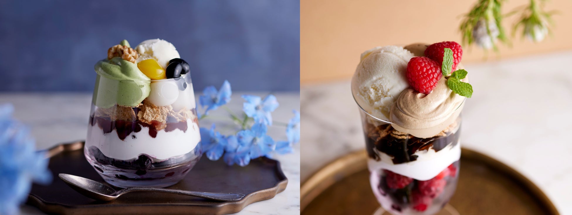 グラスにアイスクリームやゼリー・お好みのフルーツを盛り付けて、仕上げにawaはちみつをトッピング。贅沢に配合した抹茶やほうじ茶の味わいが印象的な和風パフェは、おもてなしにも最適です。