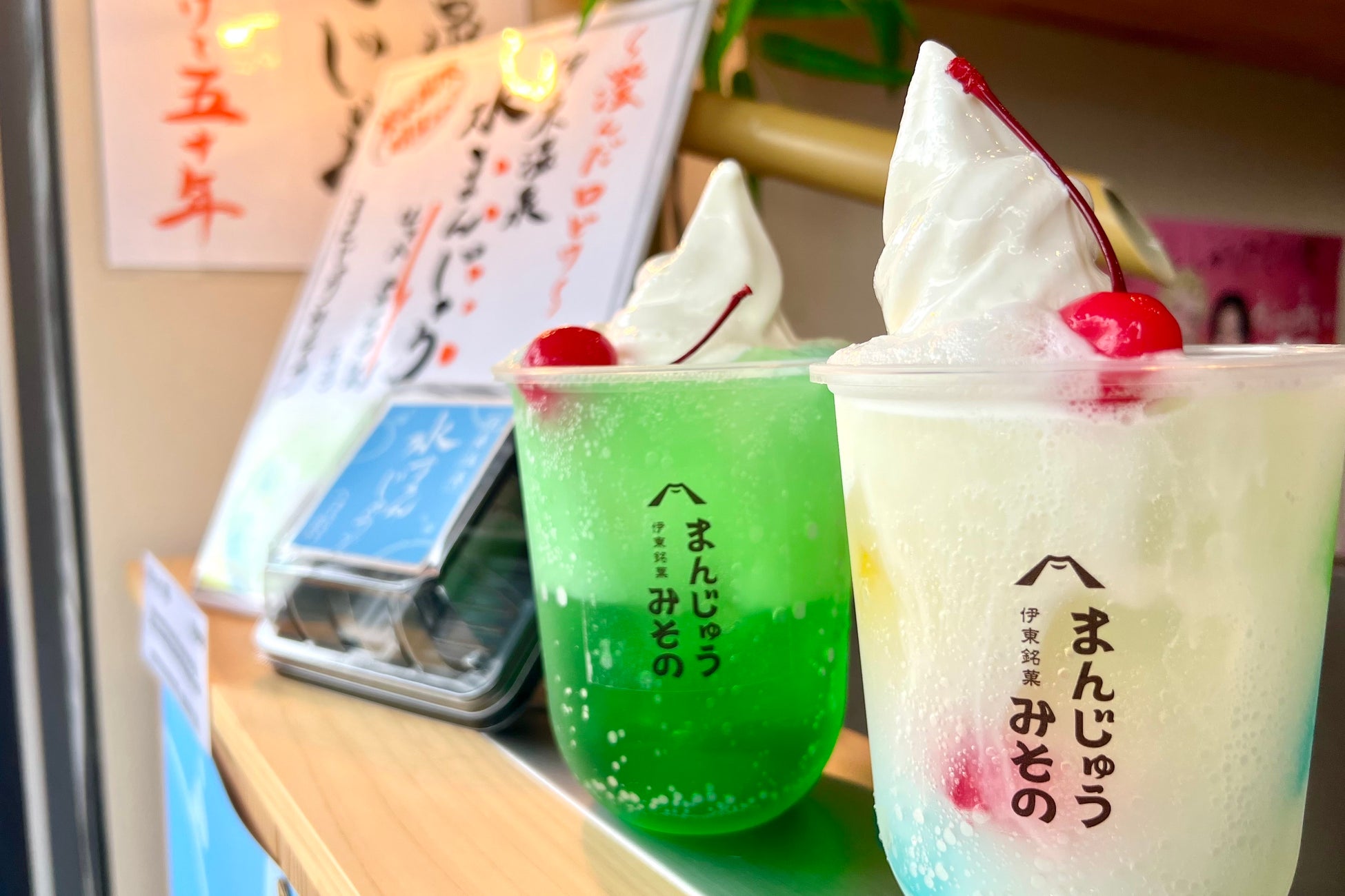 2023年に復活オープンした”まんじゅうみその”の「伊豆産ニューサマーオレンジ餡」「抹茶餡」が登場!この夏の伊東旅行はひんやり涼やかな水まんじゅうをどうぞ。
