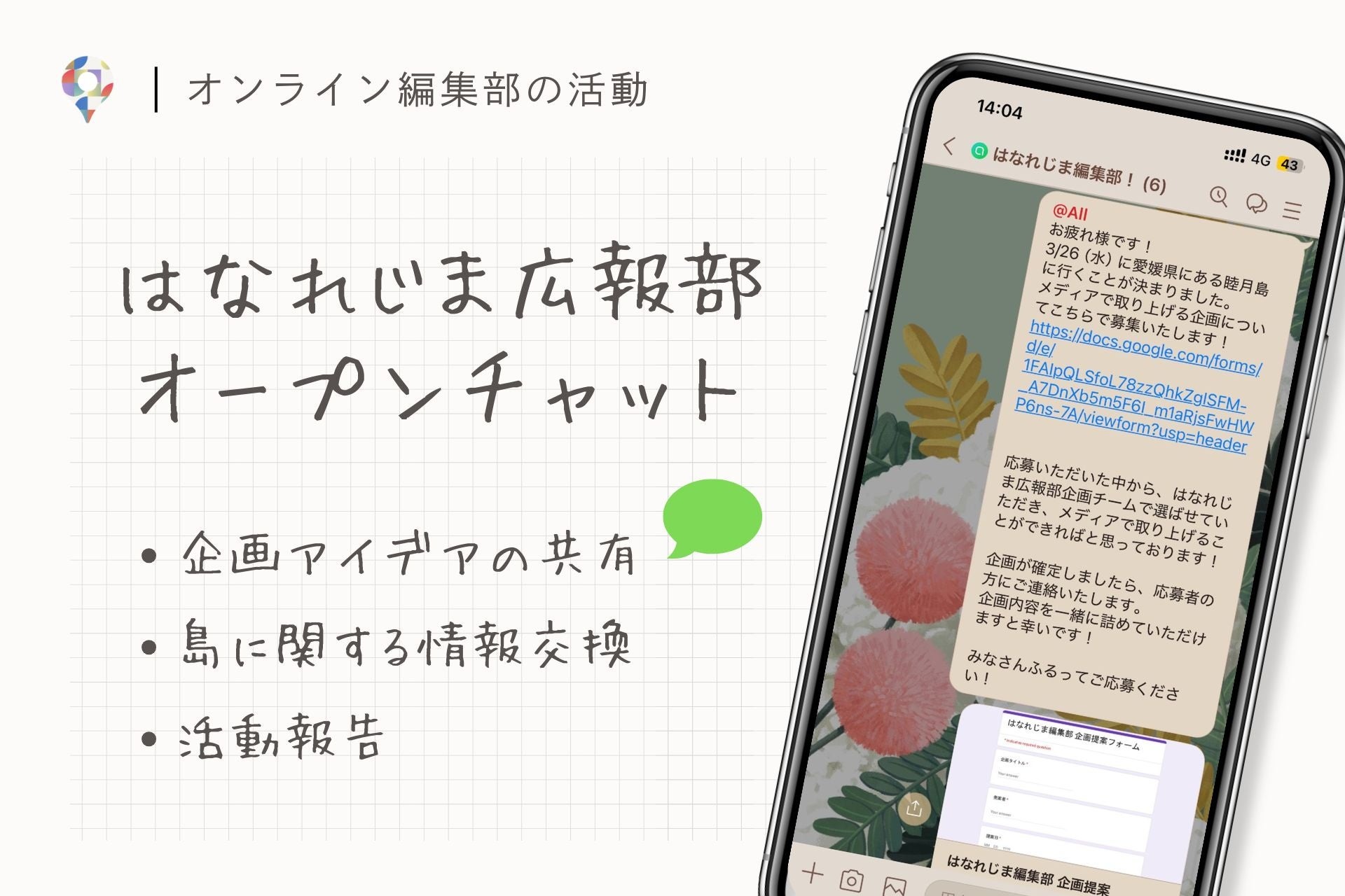 私たち『はなれじま広報部』は、島というフィールドで楽しみながら、自分らしい島とのかかわり方を見つけるためのヒントをシェアできる場になることを目指しています。