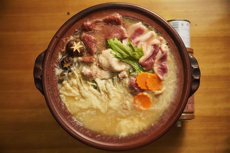 和牛・播州百日鶏(播磨)、三田ポーク(摂津)、鴨(但馬)、計4種類の肉が食べられる豪華絢爛なお鍋。